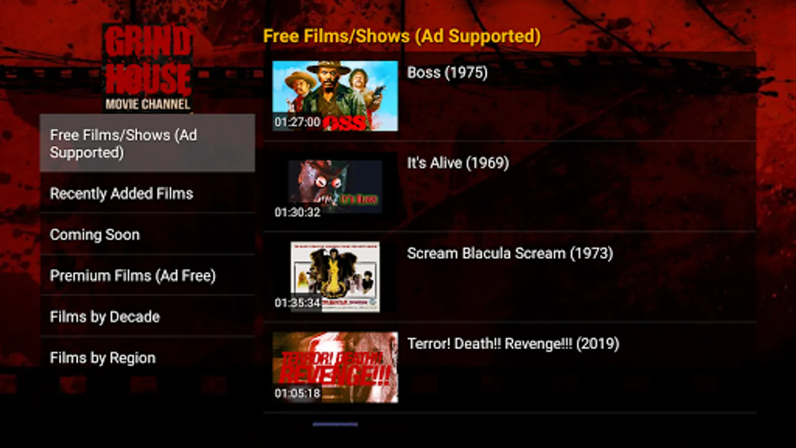 Watch the largest collection of Grindhouse films ranging from cult classics to new fan favorites. Experience the best indie exploitation films from the 1970s, 1980s, 1990s, to present day!