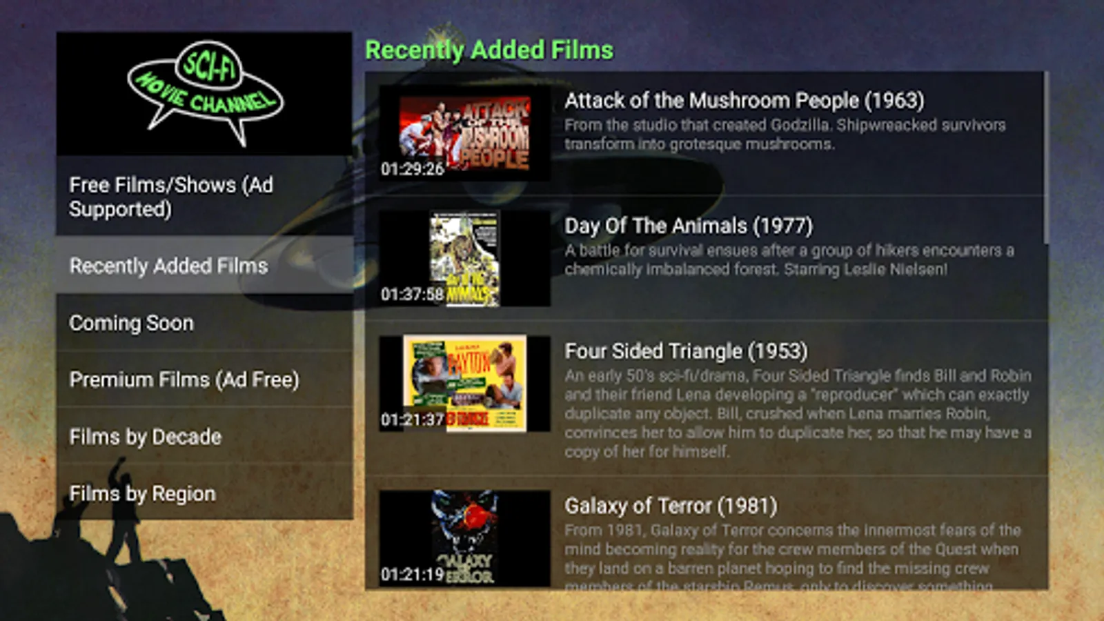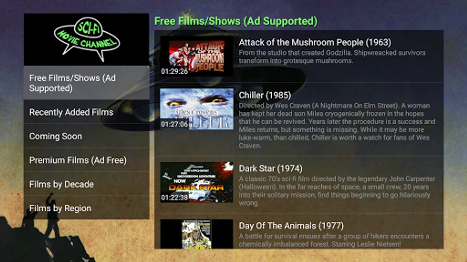 The Sci-fi Movie Channel offers science fiction films ranging from cult classics to indie favorites. Discover the best science fiction films on the Sci-fi Movie Channel.
