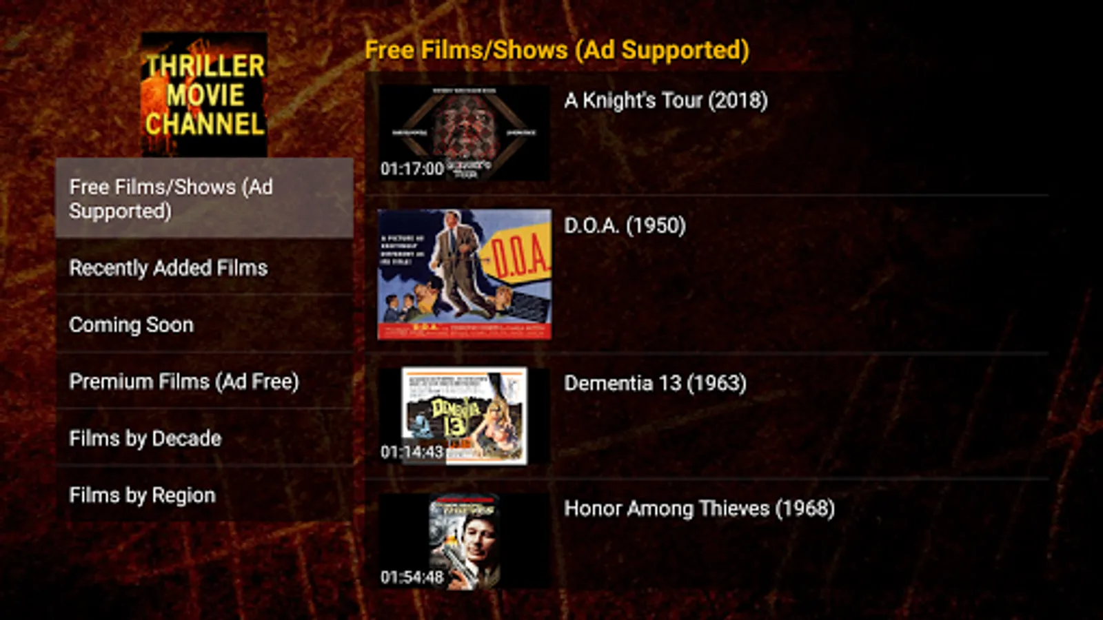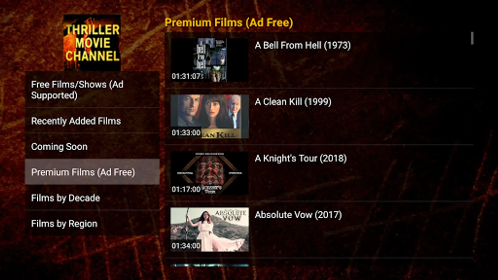 Experience the best suspense thriller films, curated from the vaults of film history. The Thriller Movie channel offers the largest collection of thrillers spanning all film genres!