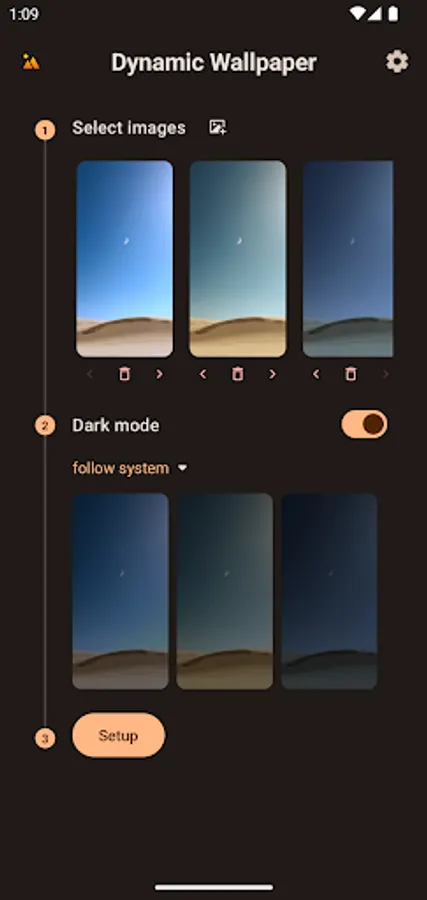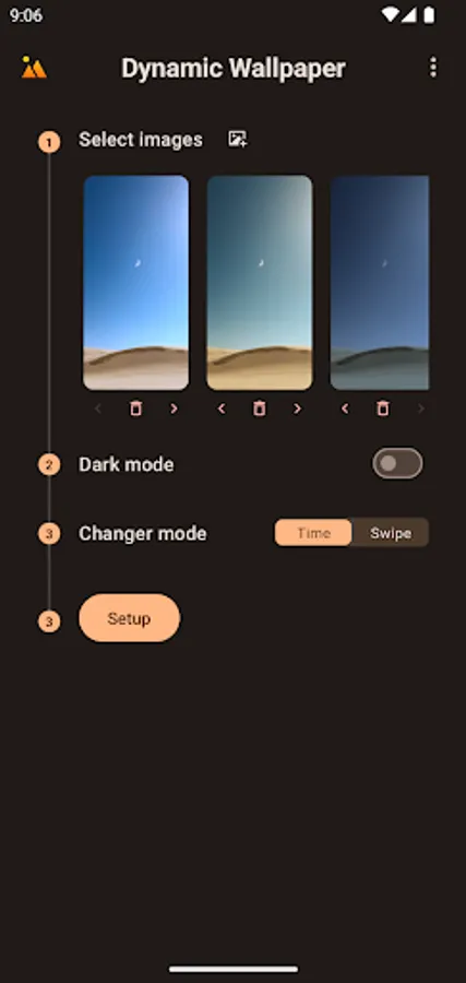 - Time mode: switch wallpaper according to time interval;