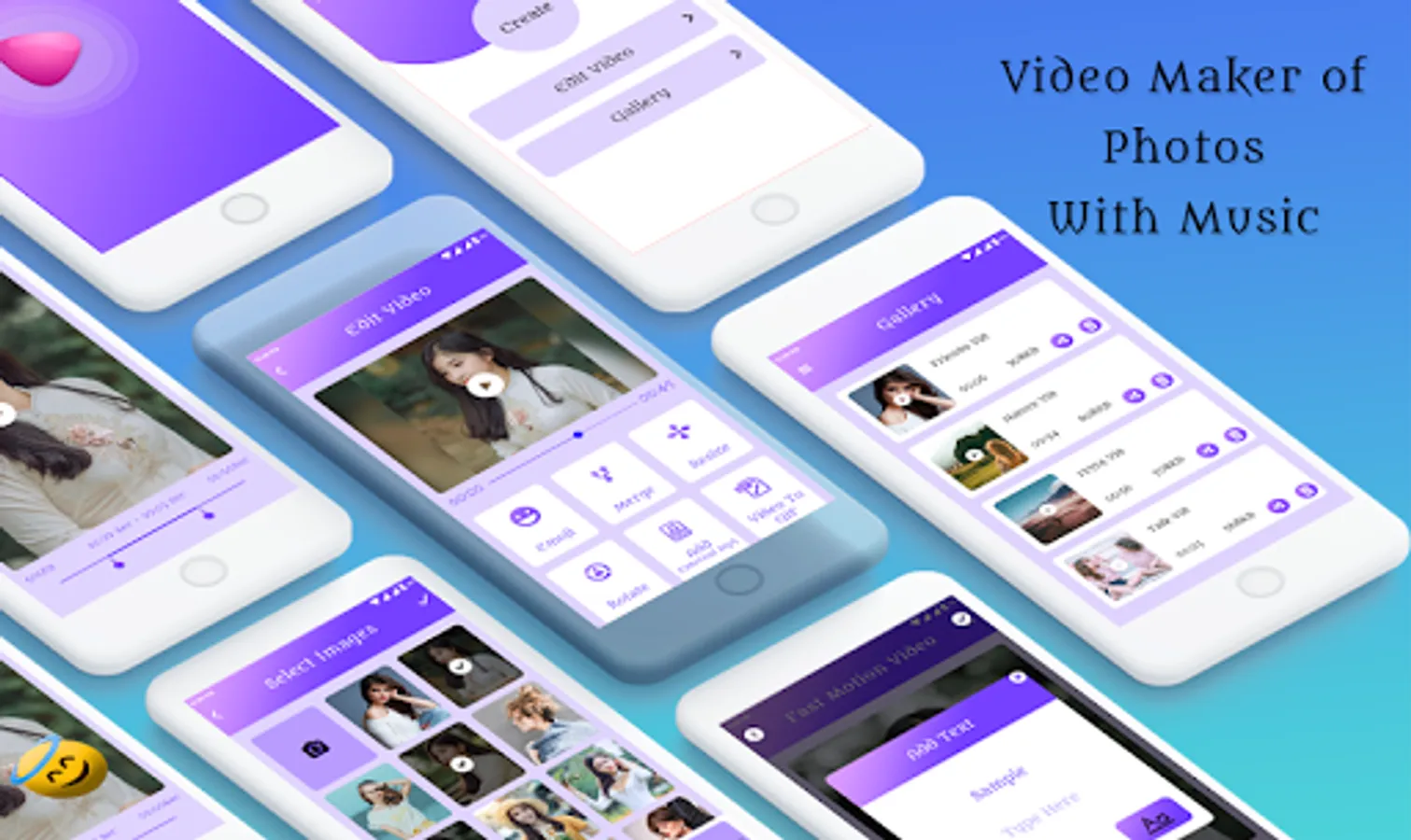 You can edit, merge, trim, slow, fast, crop split, reverse, duplicate, rotate, blur, collage clips or videos in this app.