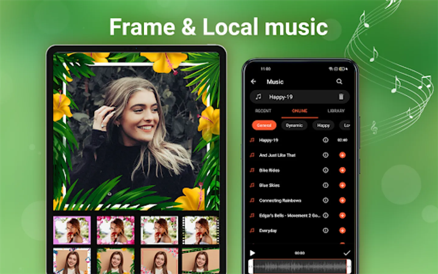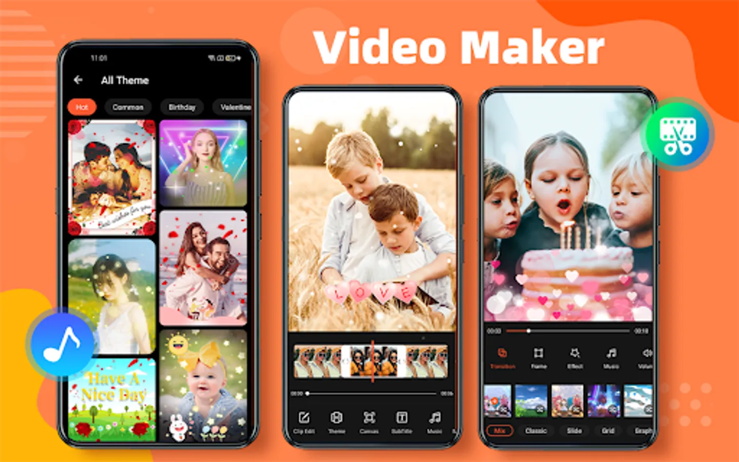 Video Maker With Music & Photo is also the best professional photo video maker, with many wonderful video templates, moving music, beautiful frames, filters. You can use video templates for free to create creative vlogs and lyrical videos with fashion effects, cool transitions, and emoticons in one click.