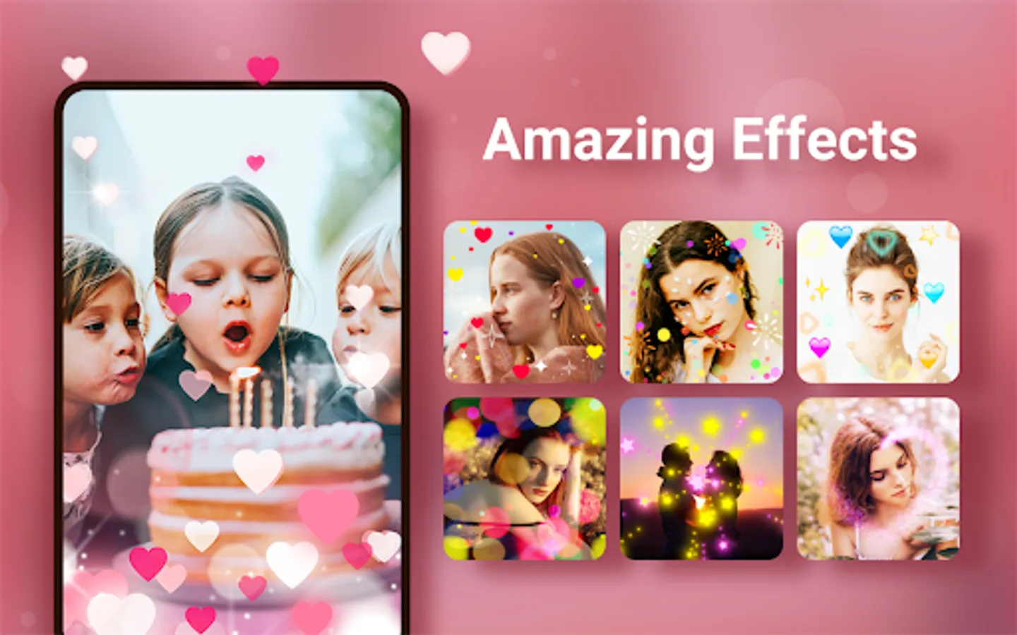 - Animal, blur effect, cutout effect, love effect, mirror effect, magician effect