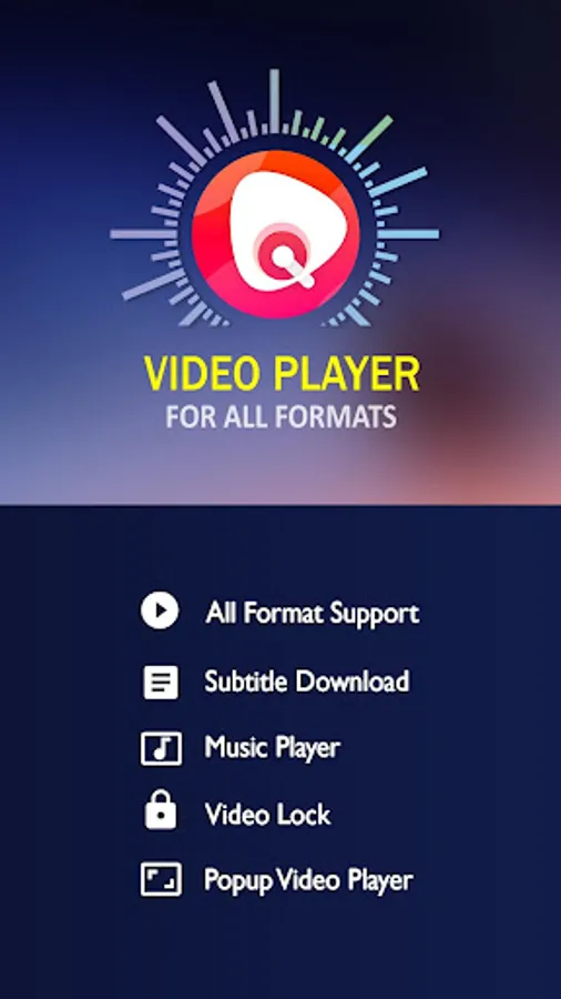 Video Player all format is a powerful and convenient media playback app.It can play all video format including 4k , HD videos.It also supports audio files with music player.