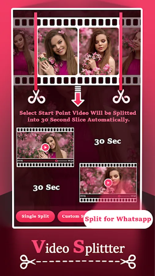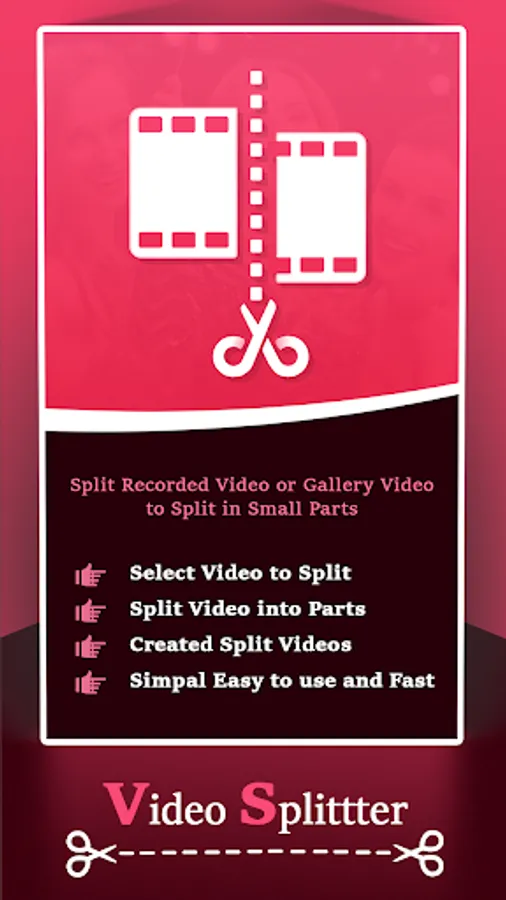 Video Spliiter helps you to split recorded video or gallary video to split in smalll parts.