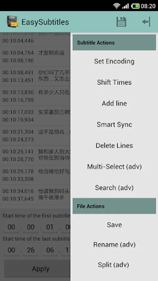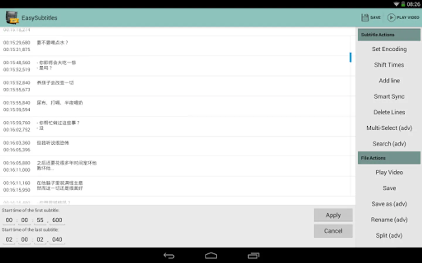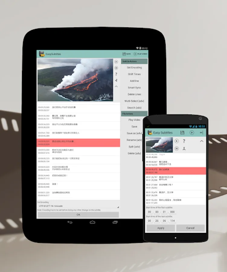 Some videos don't have embedded subtitles, then subtitles can be provided in separate subtitle files (.srt, .ssa, .ass). With Easy Subtitles you can easily modify your subtitle files to make sure that your subtitles are perfectly in sync with your videos.
