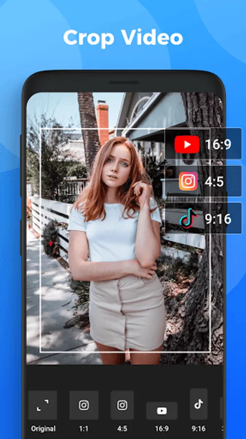 Fit your video in any Aspect Ratios, 1:1 for Instagram, 16:9 for YouTube; 9:16 for TikTok