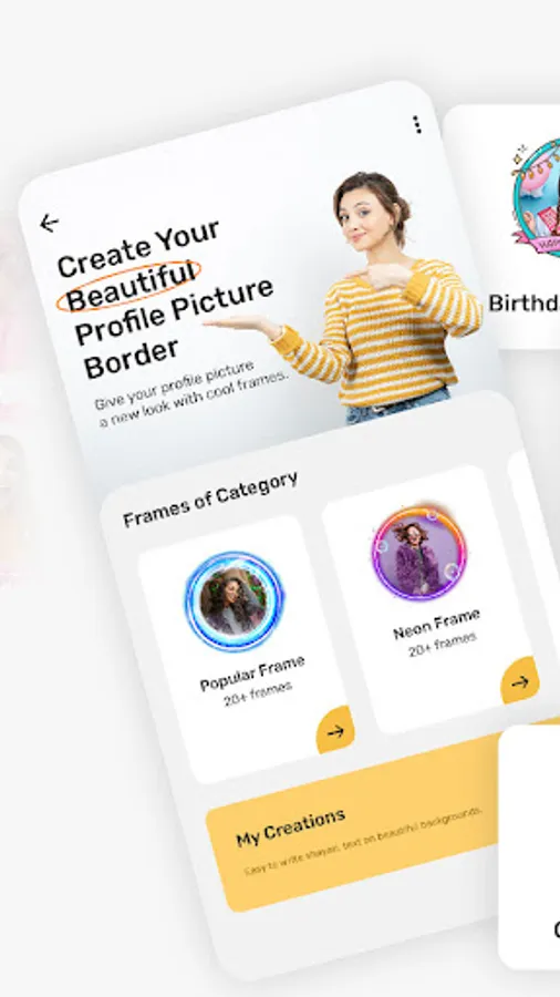 DPFrame Profile Picture Border is an app which comes with tons of Profile frames to give your Instagram, Twitter, Tiktok, Whatsapp and other social media account profiles an amazing look. With Profile Picture Border Frame , you can add beautiful profile picture border and frames to your profile picture or any photo in your gallery, you can easily setup DP Frame and can preview your profile photo frame and save it to your gallery.