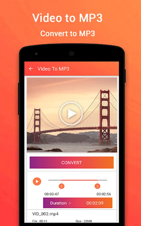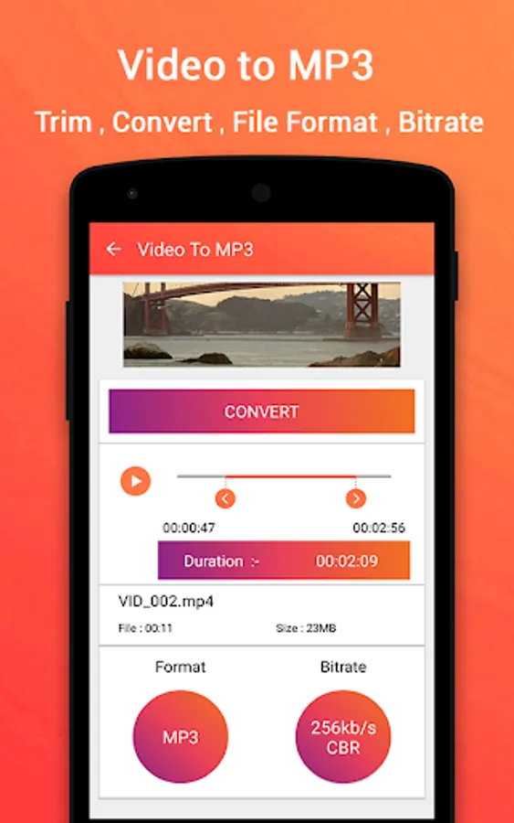 Video to MP3 - Trim & Convert app is fast and easy to trim & convert any video into MP3 and save to your phone.