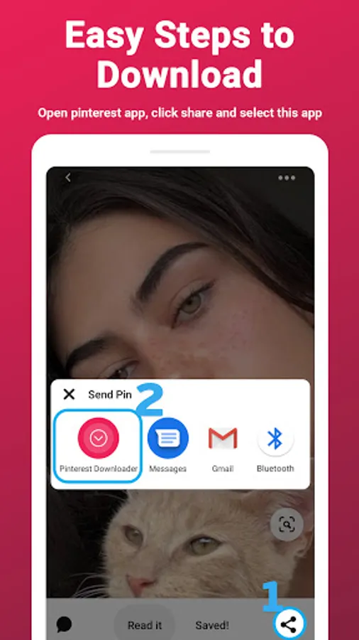 2️⃣ Open pinterest video download app and click the save icon to the quality you want