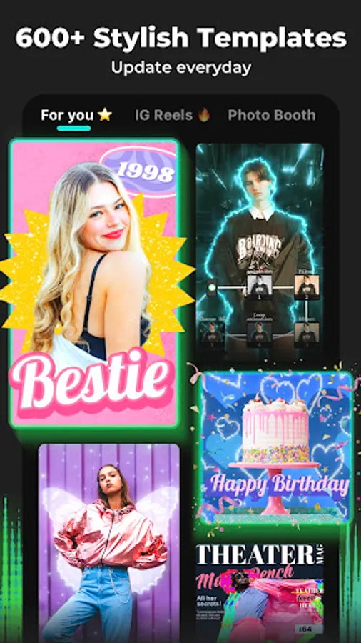 With InMelo video editor, you can easily merge photos with effects and transitions, edit video with music and pic for TikTok. Every effect and transition follows the beat. In Melo also has various trendy music video templates for any theme and you can use them for free! Share your engaging videos on Instagram and TikTok to get more followers and likes!