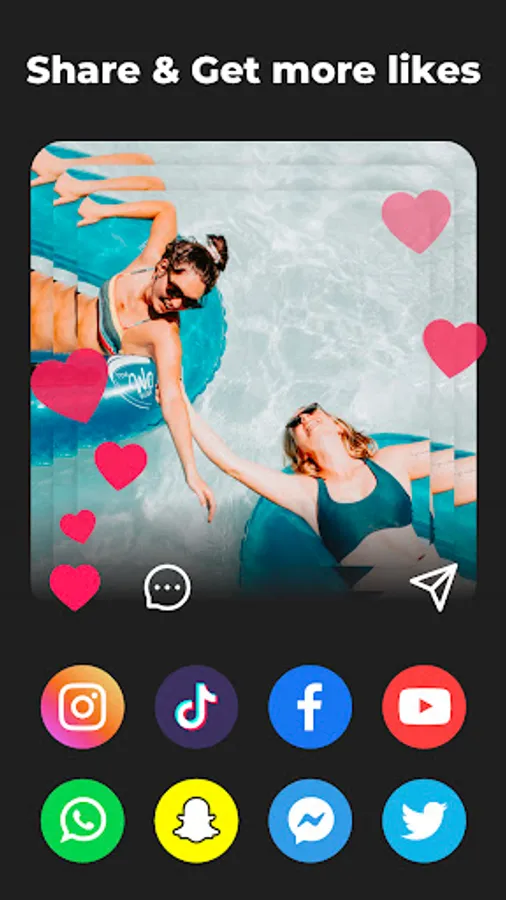 - Share your videos to TikTok, Instagram, Facebook, Snapchat to get more likes and new followers.