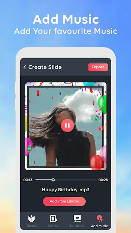- Add Your Favorite Music or Song from Your Music Library to Play Background Music With Photo Slide Show Movie Maker