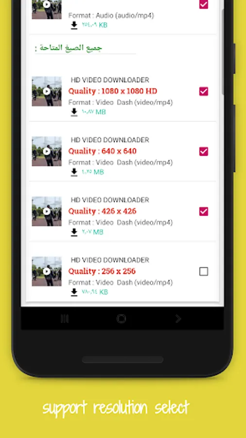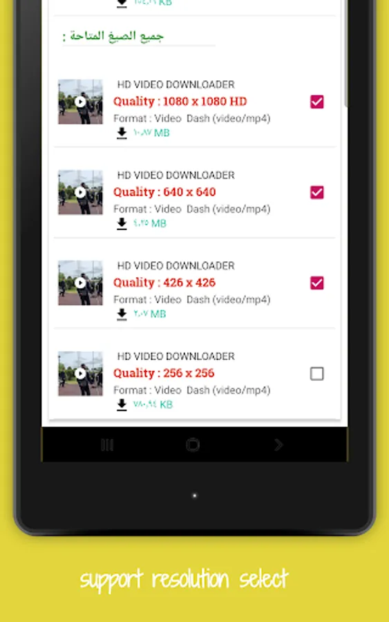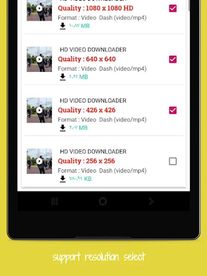 * Select different resolutions: save space by choosing a small size and enjoy HD videos by selecting high-definition mode.