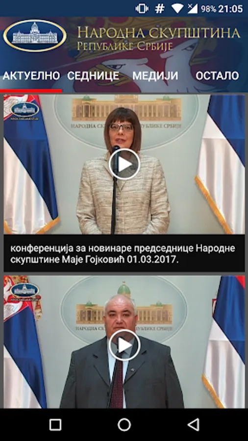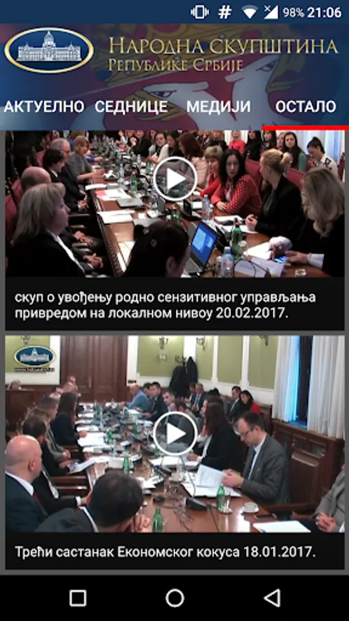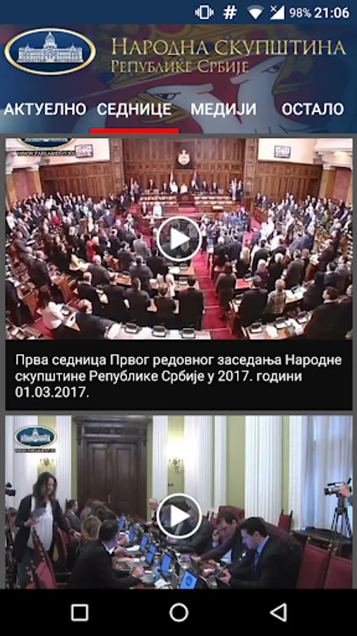 Parliament of Serbia is the official app of the National Assembly of the Republic of Serbia, which allows you to monitor the transfer and view video archive session of the National Assembly and its working bodies, as well as the activities of Parliament and President of the National Assembly. Reports on activities, acts of the National Assembly and other content can be downloaded at www.parlament.rs