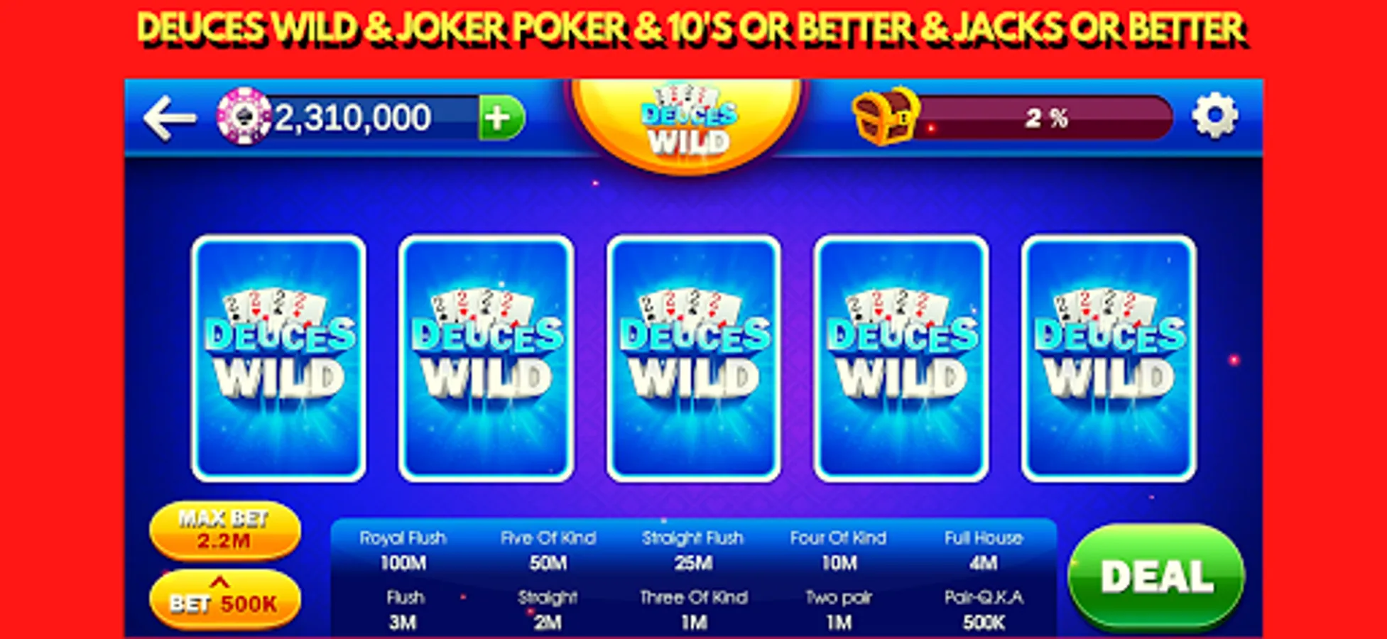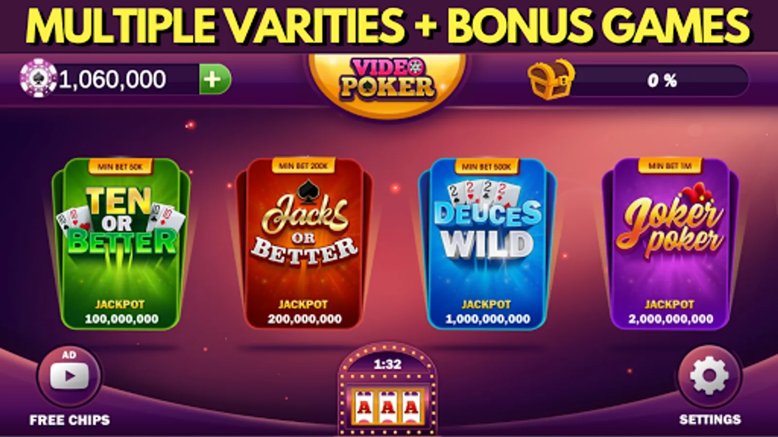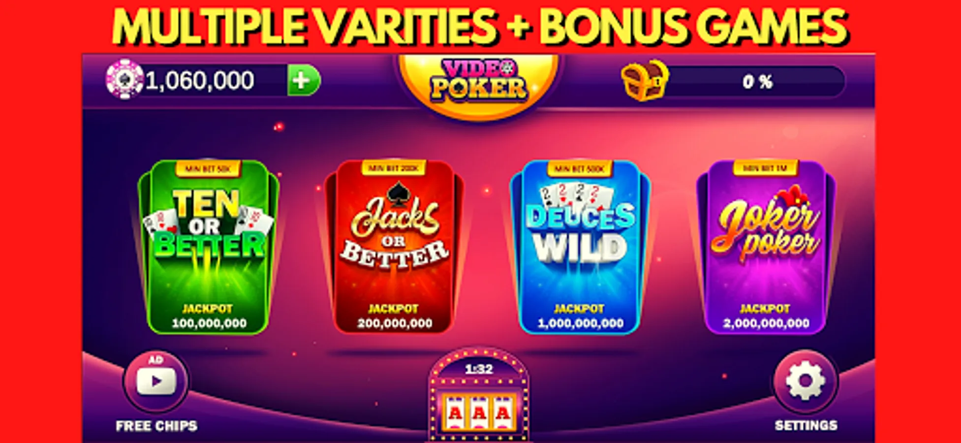 This video poker game free app is intended for adult audiences and does not offer real money gambling or any opportunities to win real money or prizes. Success within this free poker game does not imply future success at real money gambling.