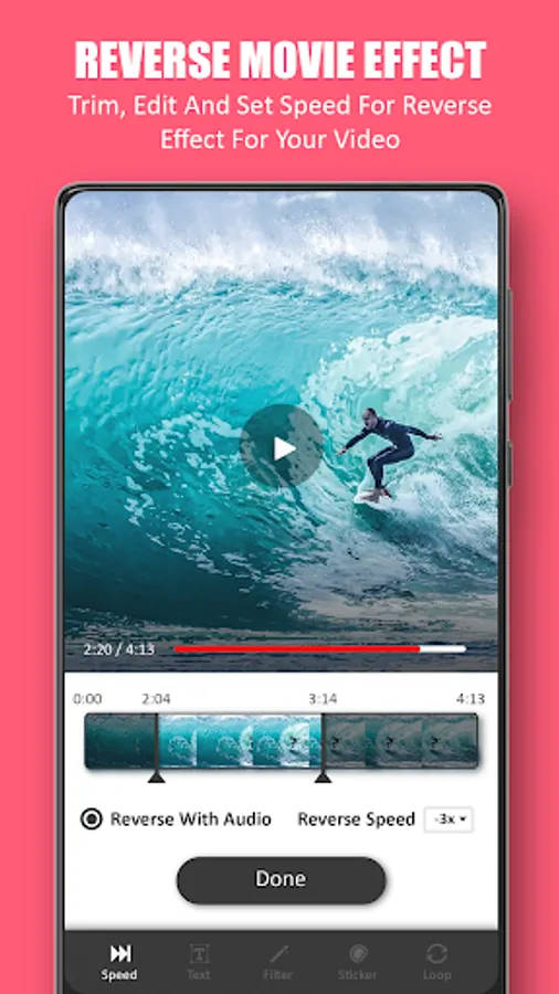 You can record a new video or choose a video from your library, then cut and make video in reverse. Best and fast app to make reverse video and to apply reverse video effect.