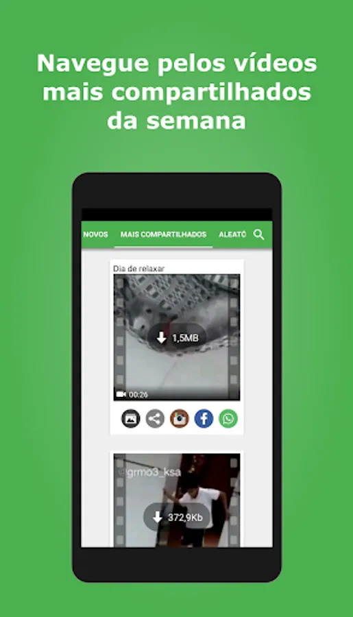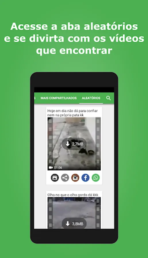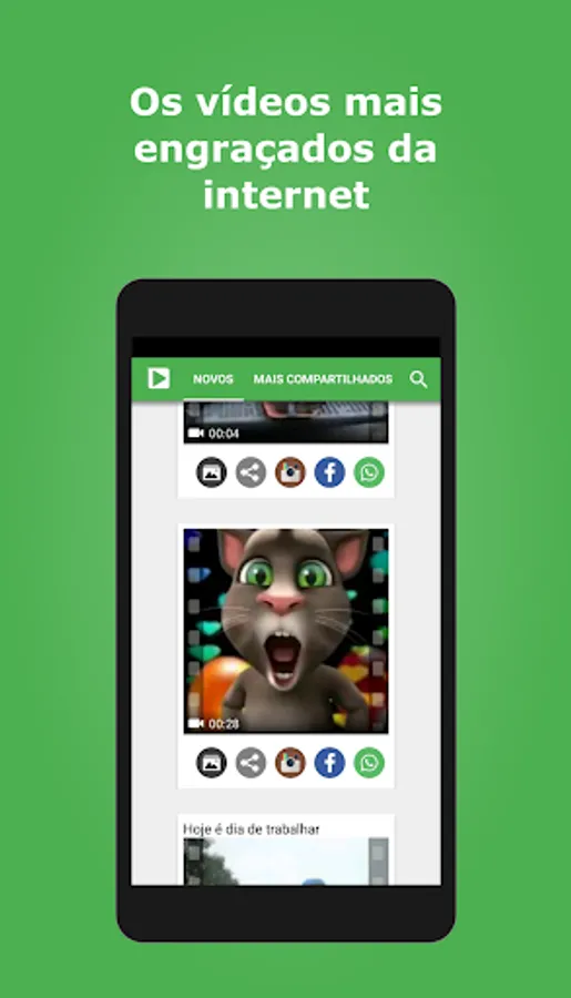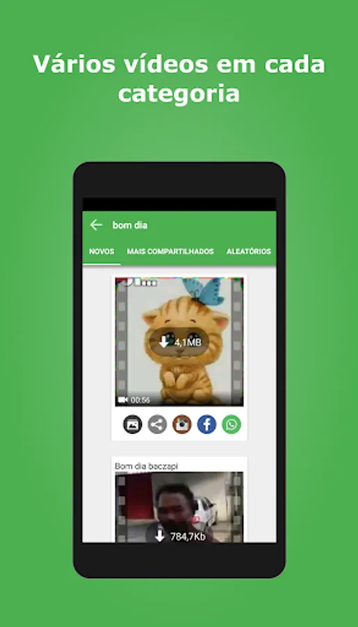 Videos for whatsapp is an app that gathers funny videos and gifs from several other categories for you to share on your whatsapp, facebook, instagram and etc... with your friends and groups.