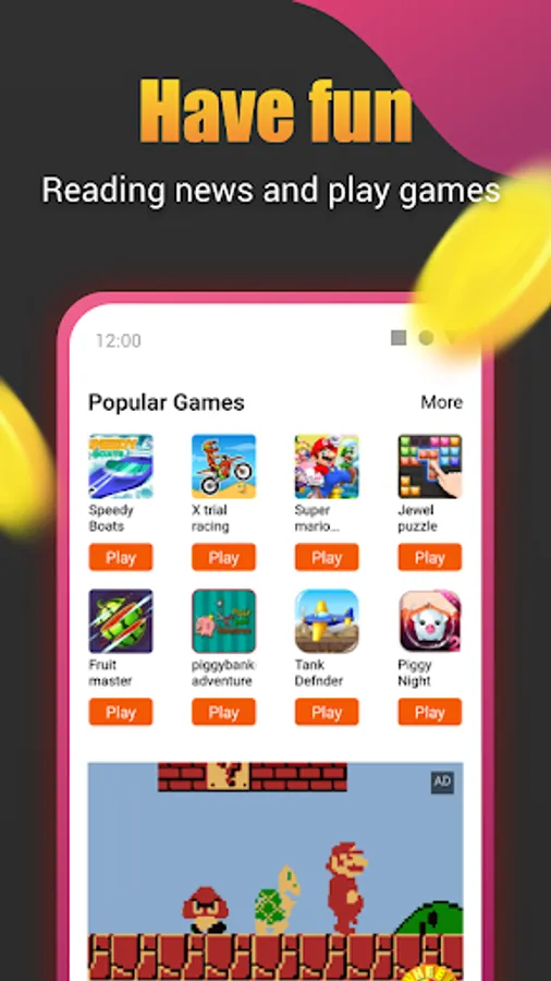 Our app is an entertainment app and we provide a whole selection of games to choose from; users can play these games and have a lot of fun & enjoyment via them.