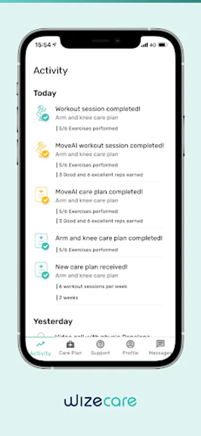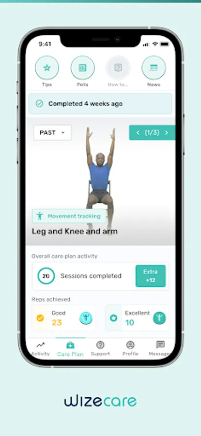 WizeCare for Patients at home app provides access to personalized tailored-made physical therapy plans anytime, anywhere.