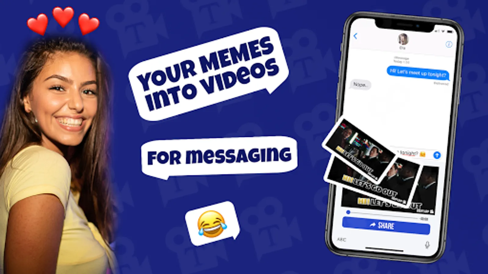 Thousands of custom videos to create memes from - just input your meme text, and the app will create your custom meme quickly!