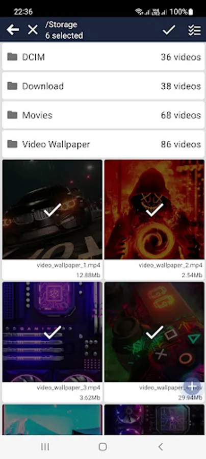 ★ You can select a folder containing your videos in your phone's internal memory and then this app will automatically scan the videos contained in the folder and set it as video wallpaper. For example you can select the DCIM/Camera folder and all new videos you record will be automatically scanned and set as video wallpaper without you having to reopen the app and manually add the video to the album!