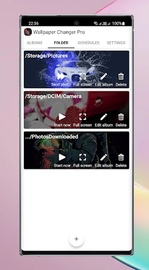 ★ You can select a folder containing your pictures in your phone's internal memory and then this app will automatically scan the pictures contained in the folder and set it as wallpaper. For example you can select the DCIM/Camera folder and all new photos you take will be automatically scanned and set as wallpaper without you having to reopen the app and manually add the photos to the album.