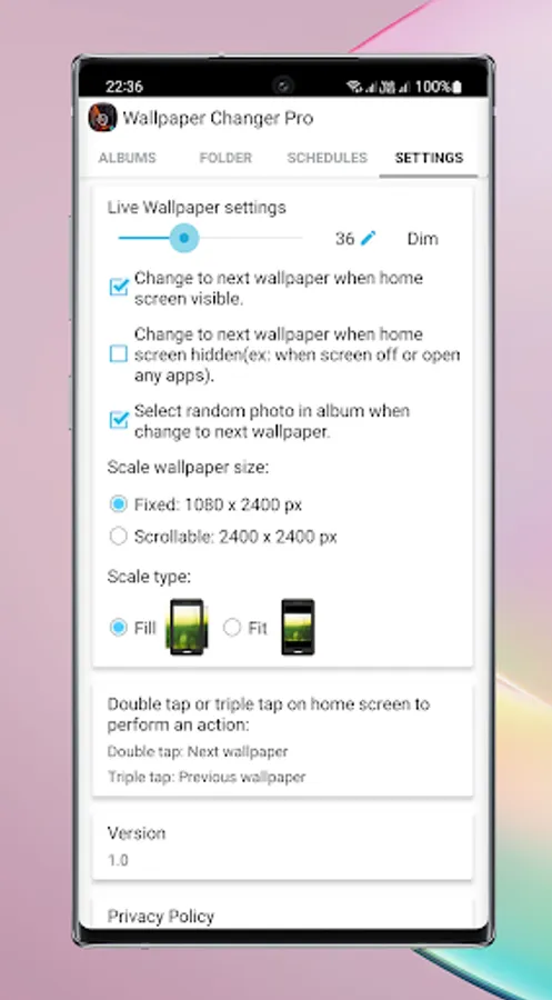★ Double or triple tap on the home screen to perform one of the actions: switch to the next or previous wallpaper, switch to the next or previous album.