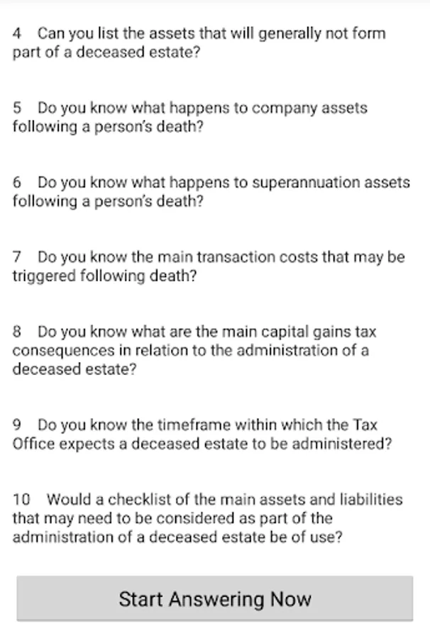 This app is another in a series of apps released by specialist estate planning firm View Legal apps. View now have apps in areas such as estate planning, business succession, directors duties and SMSFs.
