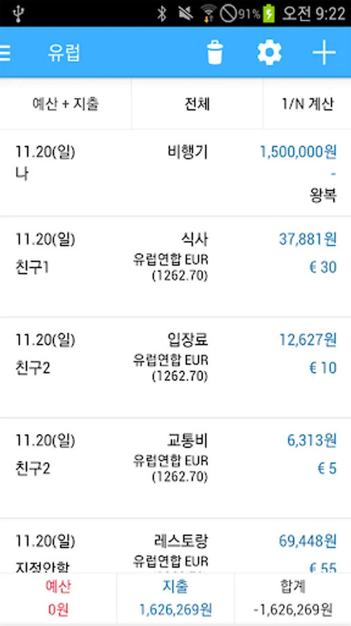 In particular, we easily calculated as 1 / N yeoreomyeong up with the cost of the trip went.