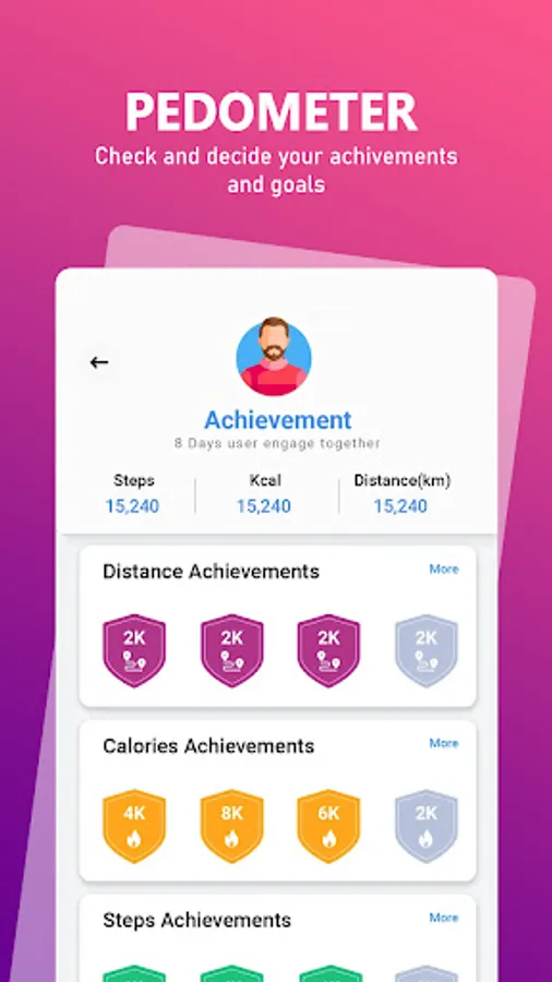 The app's interface is simple and user-friendly, making it easy for users to view their step count, distance traveled, and calories burned. Users can set daily and weekly goals for themselves and track their progress towards meeting them. The app also includes a history feature, which allows users to view their step count and progress over time, making it easy to monitor their fitness journey and celebrate their accomplishments.