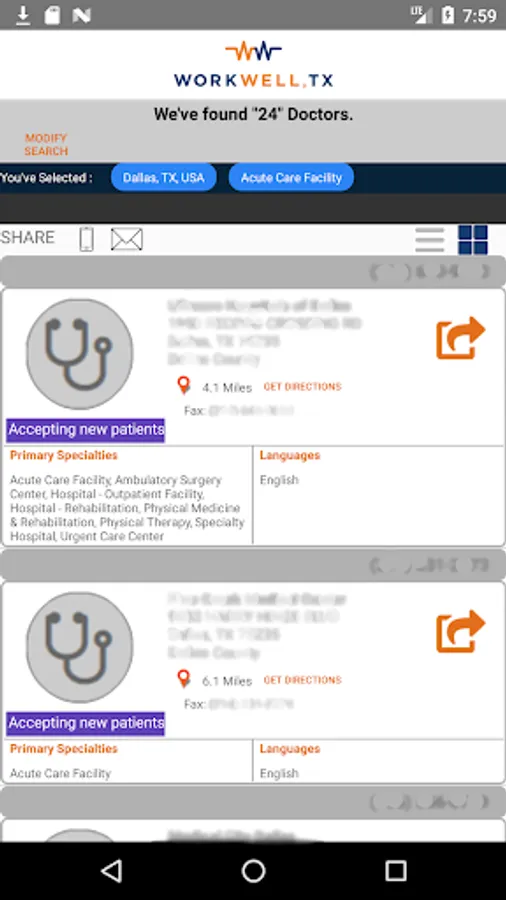 Displays a list of the nearest WorkWell, TX and Texas Star Network health providers based on geographic location or user designed preferences. The application allows users to quickly locate network participating providers for their workers’ compensation injury or illness. Provides claim and network information and resources for employers and injured workers.