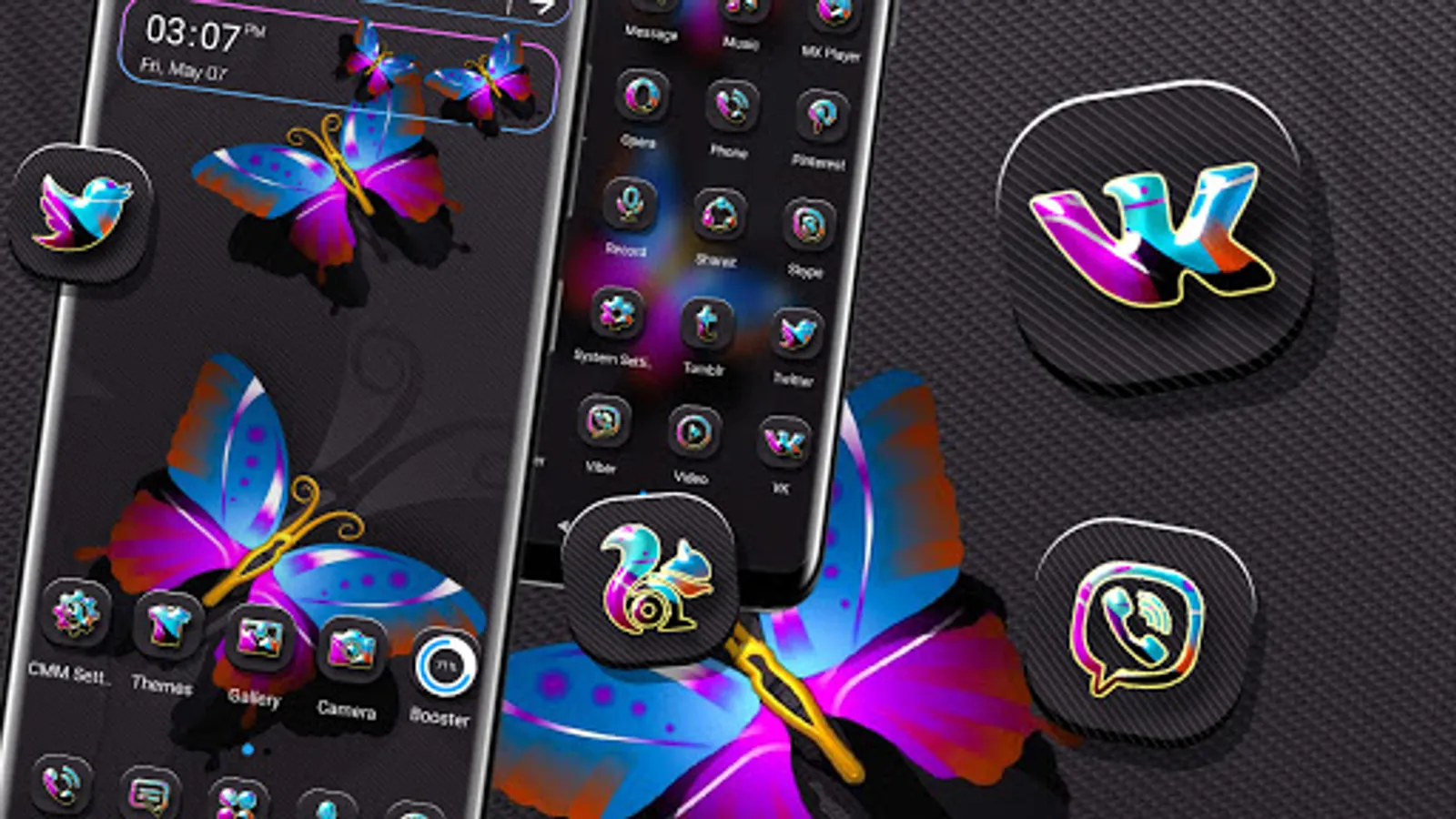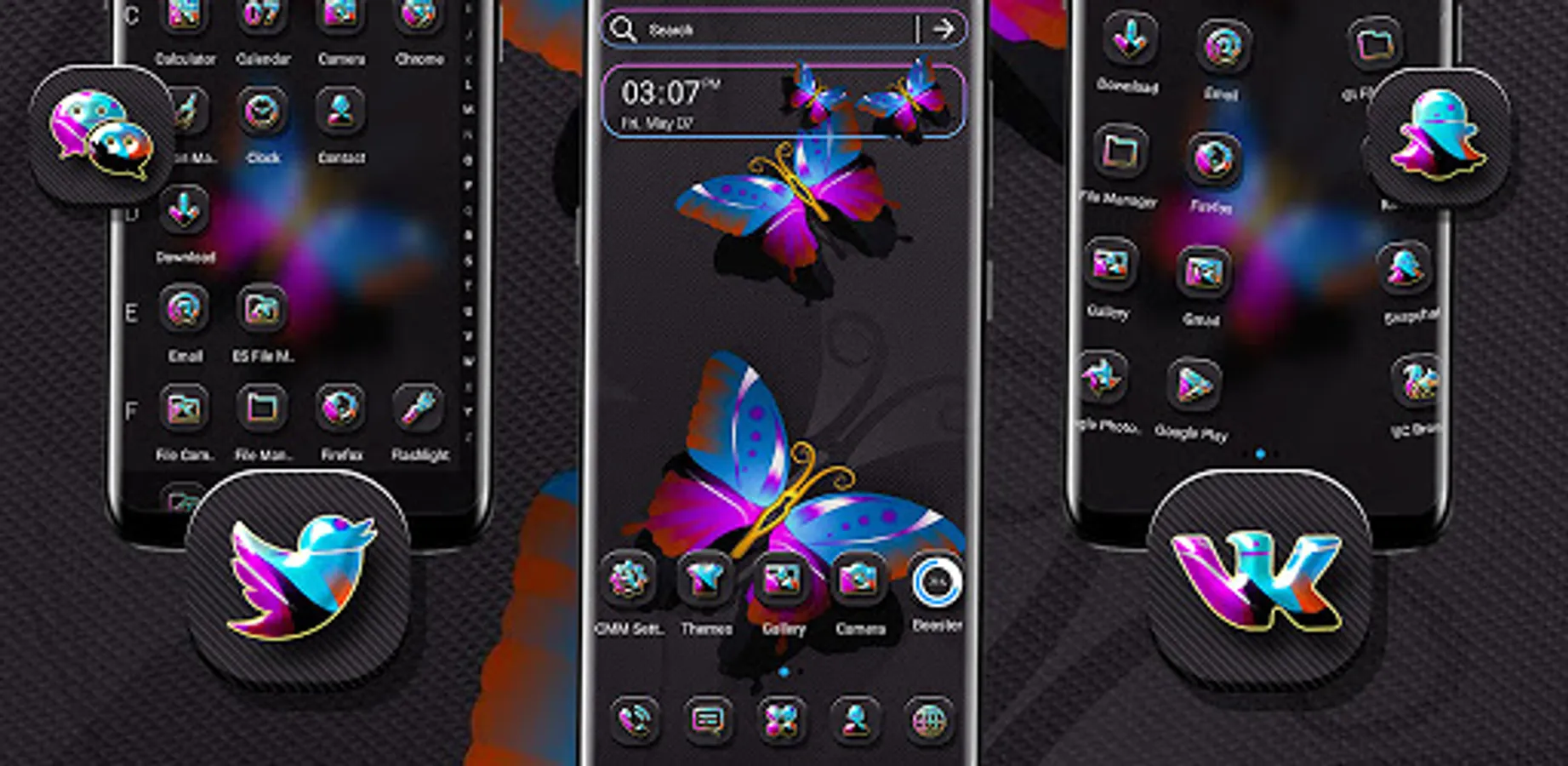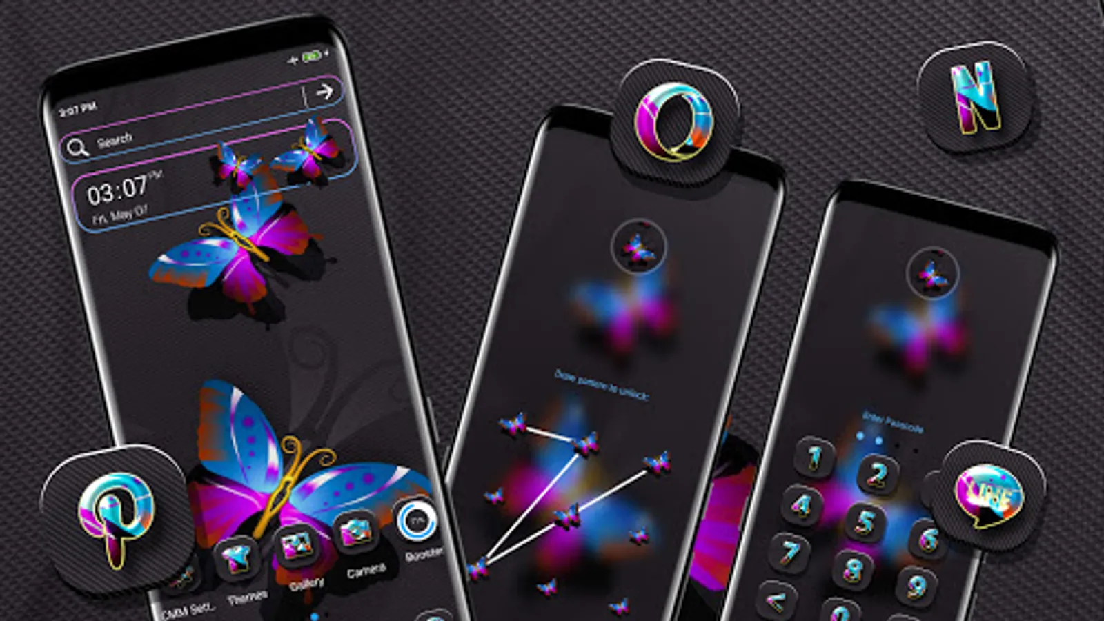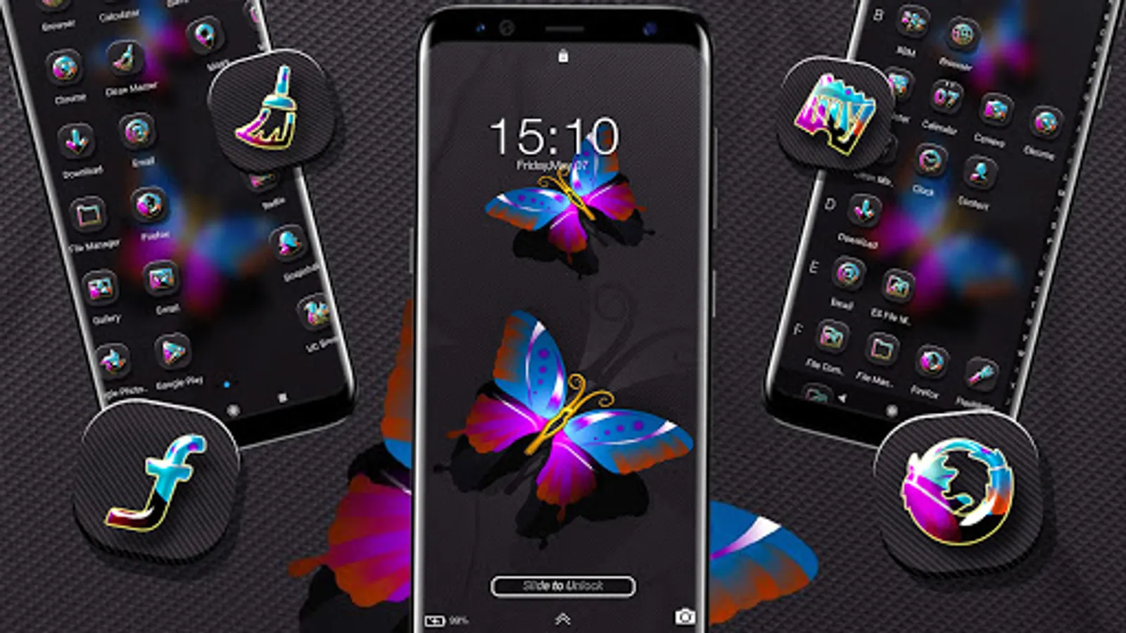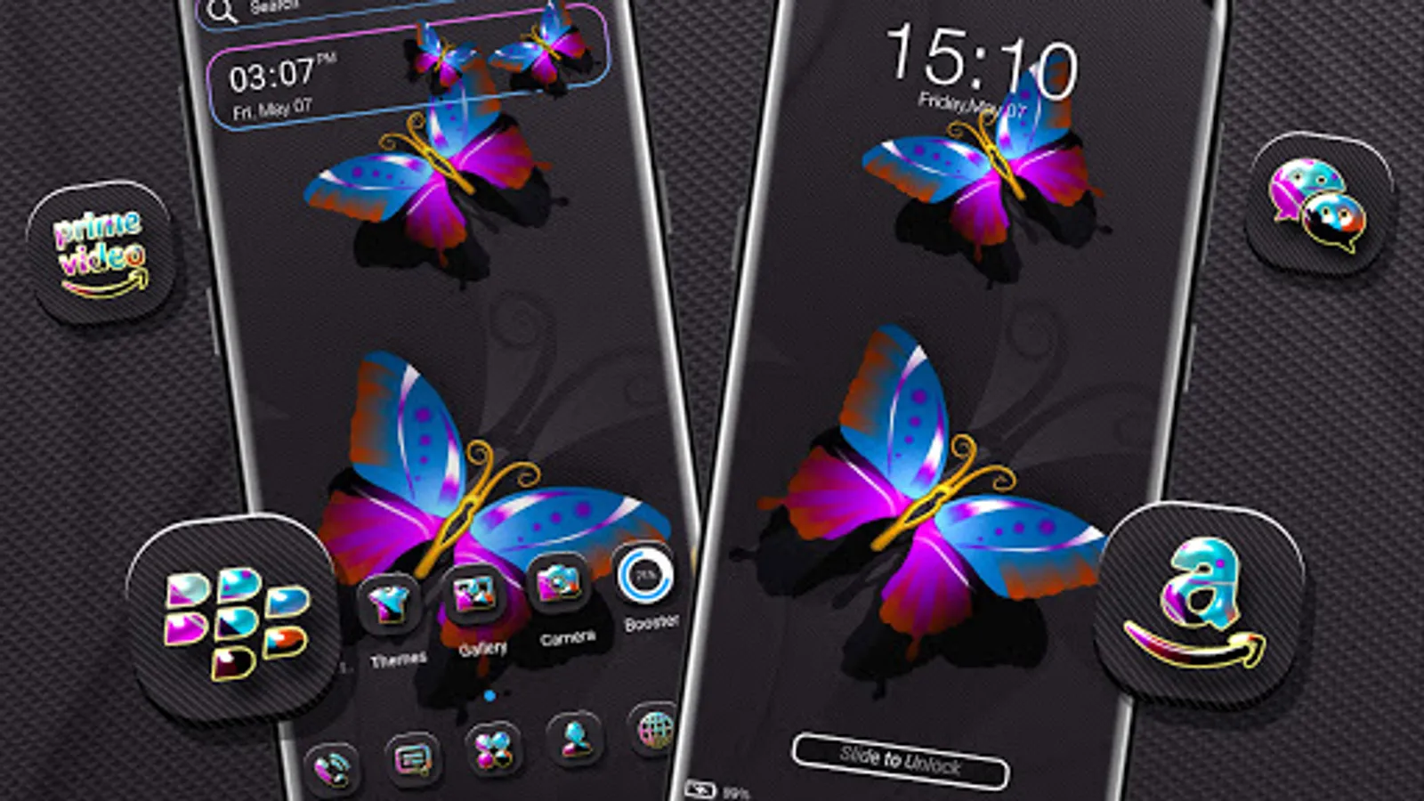 We made sure that all the Android devices are compatible with Blue Pink Butterfly Launcher Themes, the Launcher theme we've created for you, this is a new theme and it fits on either handset or tablet.No dull backgrounds any longer!. In Blue Pink Butterfly theme you can also complete change your lock screen into a different look.