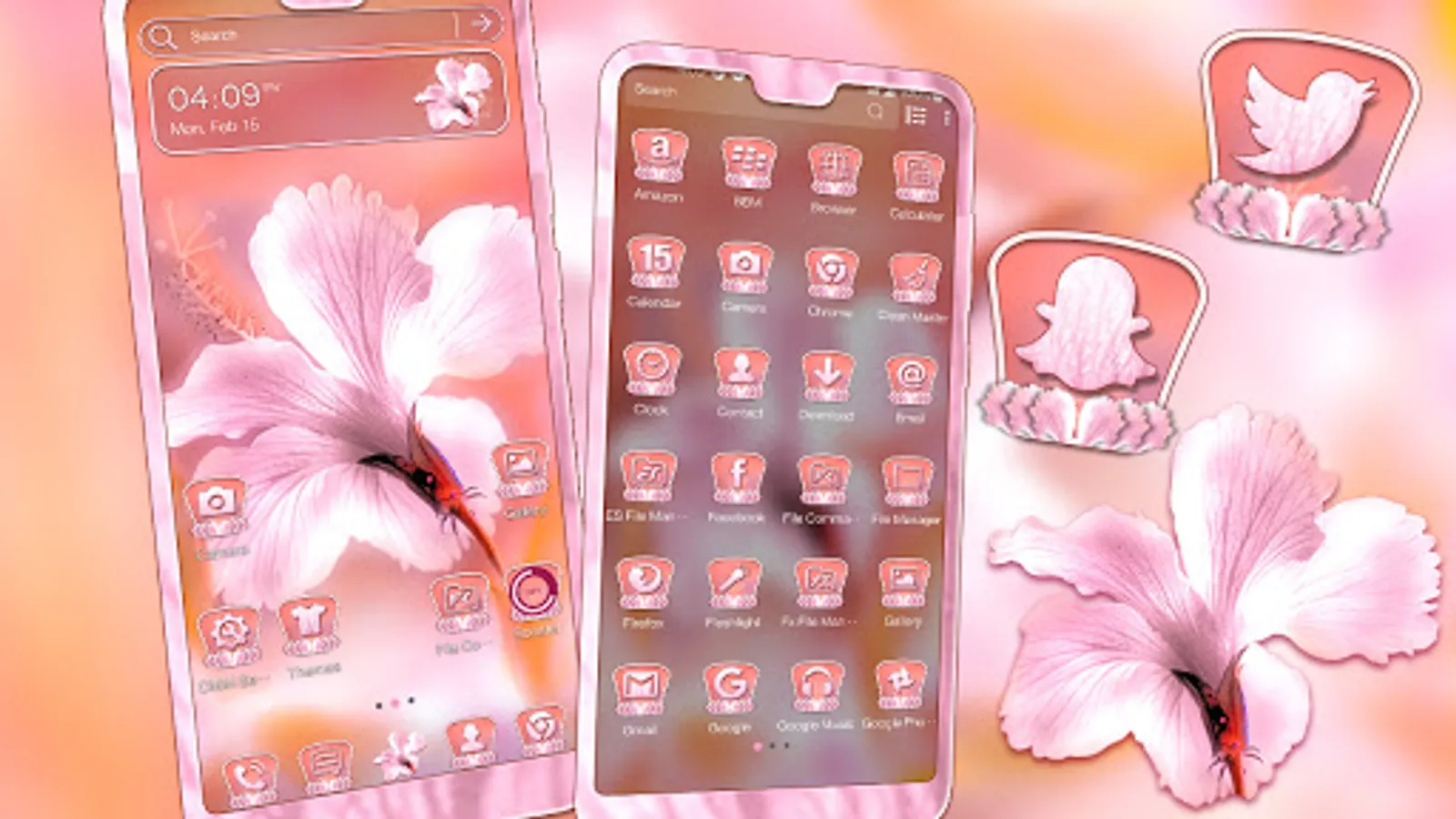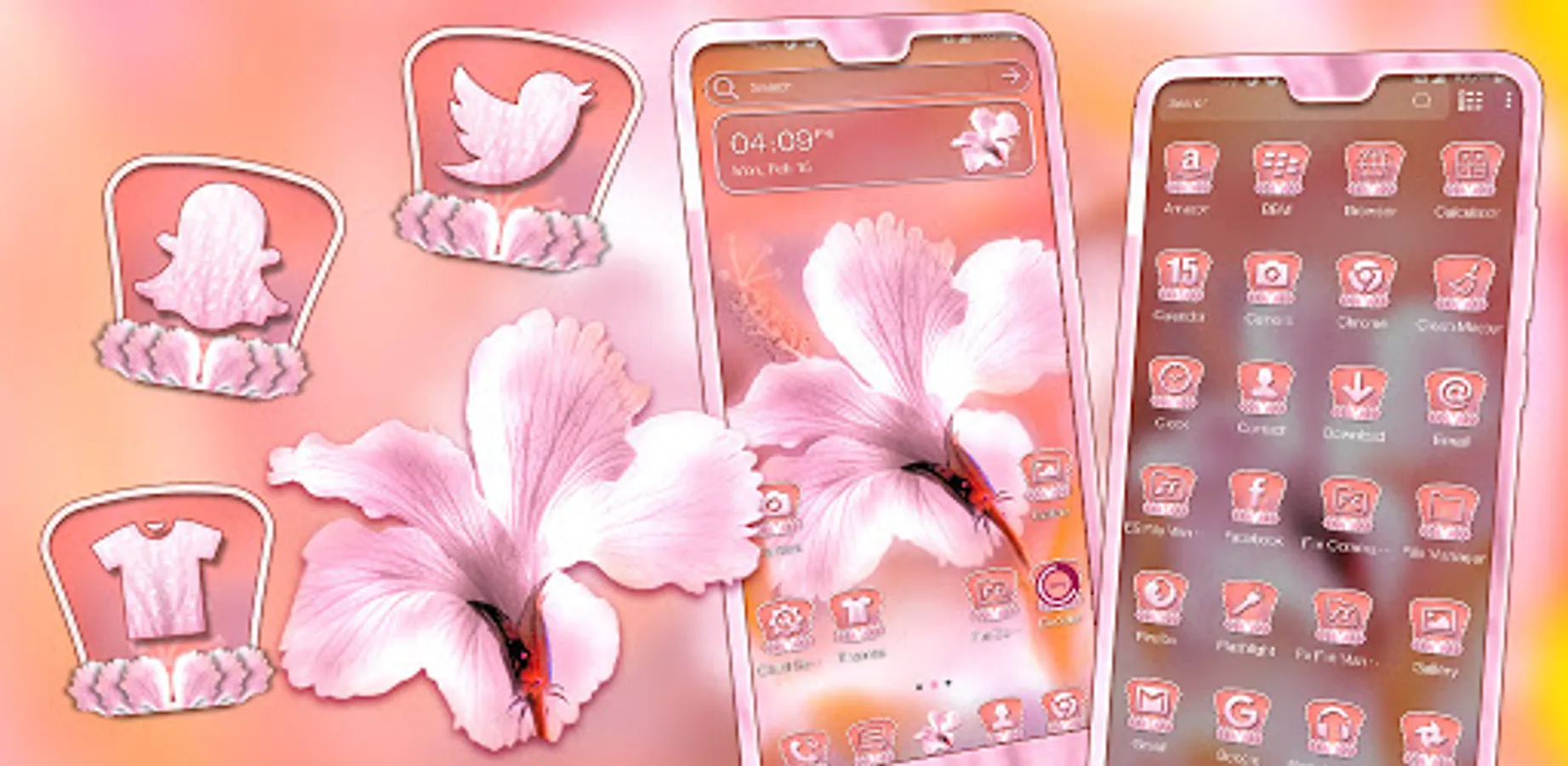 The Hawaiian Hibiscus Flower Launcher Themes is a cute theme for Android with cool flower wallpaper and incredibly imaginative custom app icons that will surely make your phone stand out. By downloading it today, personalise your phone!