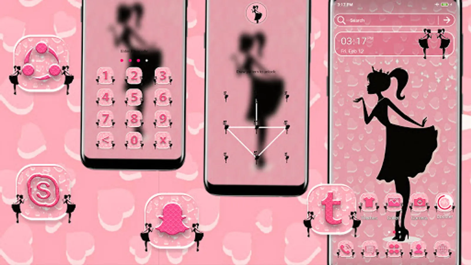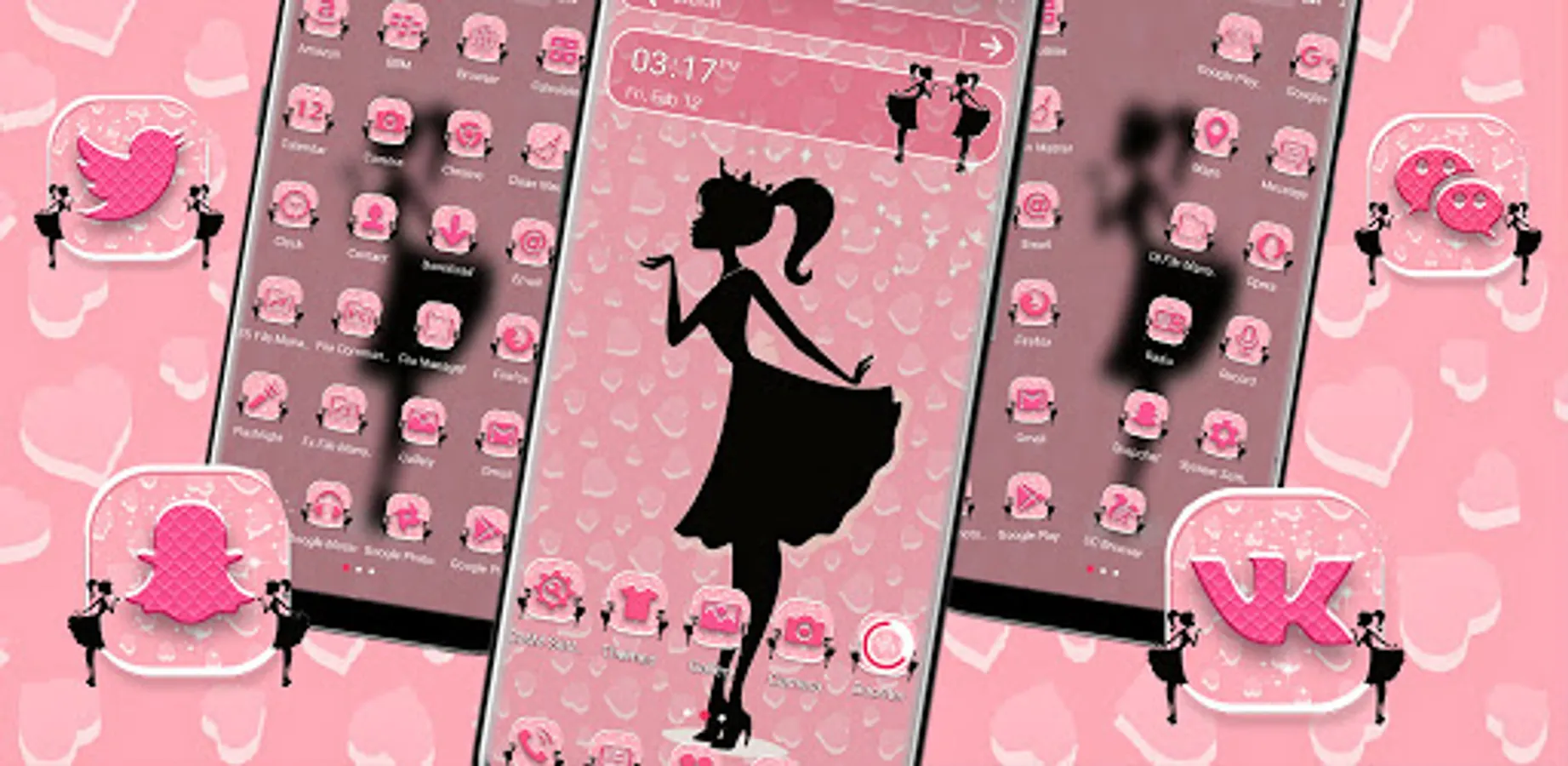 We made sure that all the Android devices are compatible with Princess Doll Launcher Themes, the Launcher theme we've created for you, this is a new theme and it fits on either handset or tablet. No dull backgrounds any longer!. In Princess Doll theme you can also complete change your lock screen into a different look.