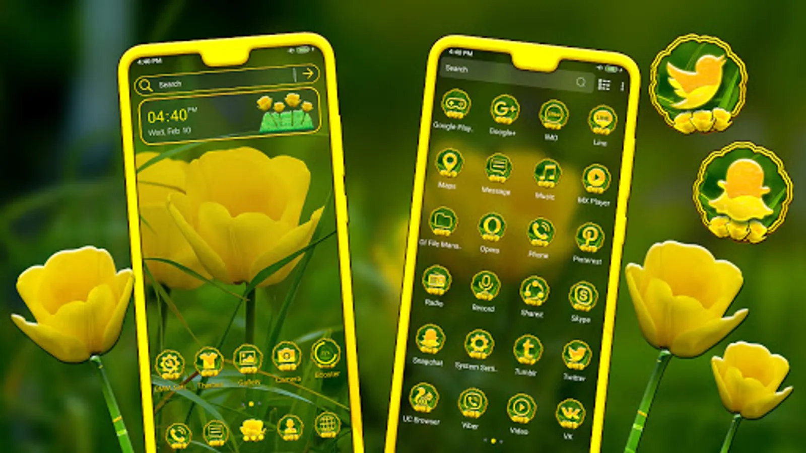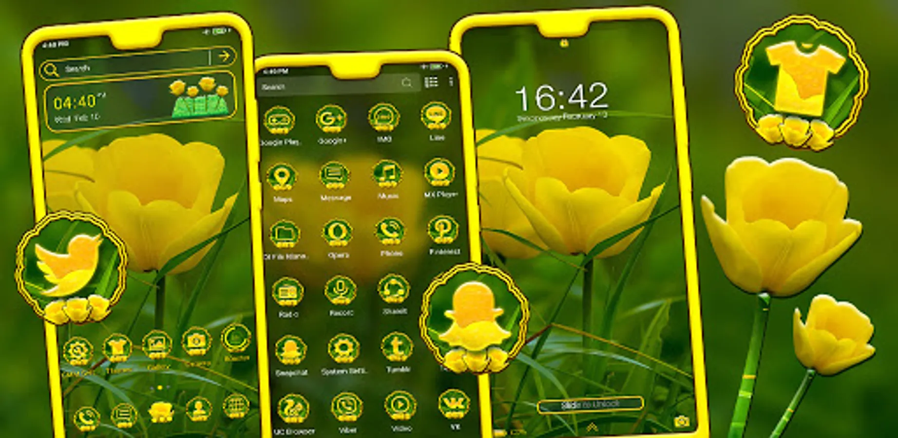 The Yellow Tulip Launcher Themes is a cute theme for Android with cool flower wallpaper and incredibly imaginative custom app icons that will surely make your phone stand out. By downloading it today, personalise your phone!