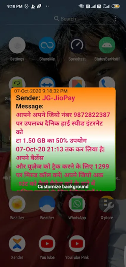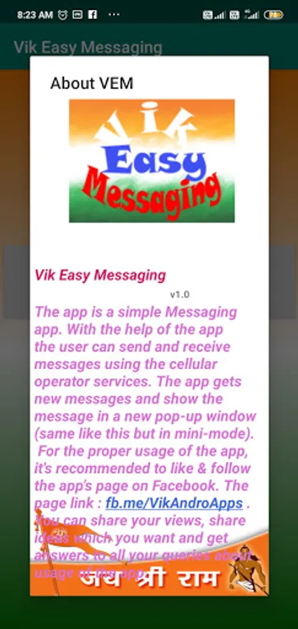 Forward or Reply to the message. In the first build, the Indian National flag Tiranga's tricolors are used as the background of messages. A custom image