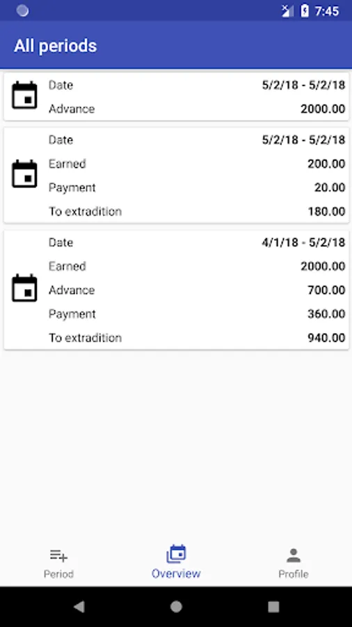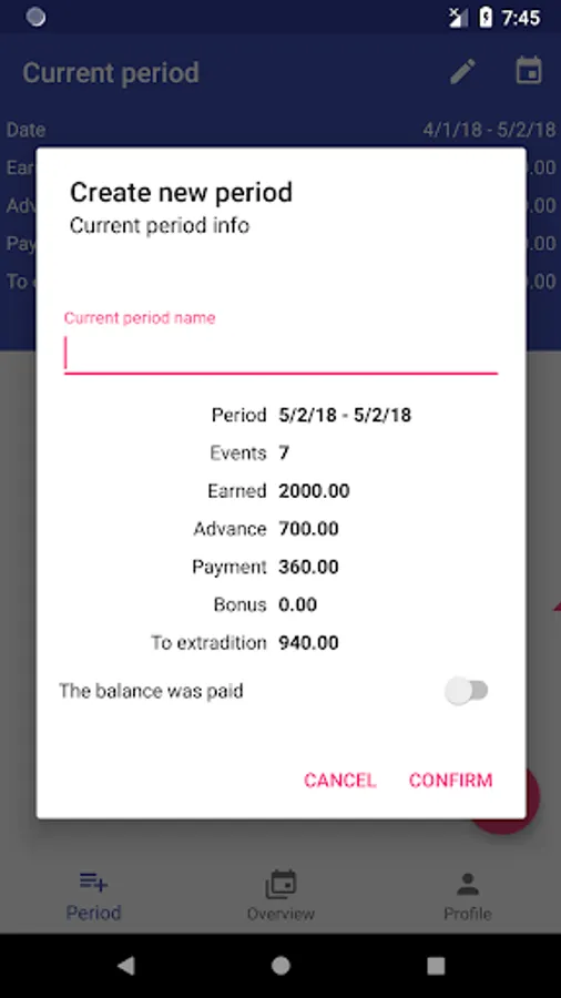 2. Create reporting periods - you will be shown a general summary for each period and you will be able to keep several periods at the same time.