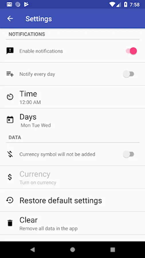7. Do not forget to enter data - a flexible system of settings allows you to create a schedule of reminders
