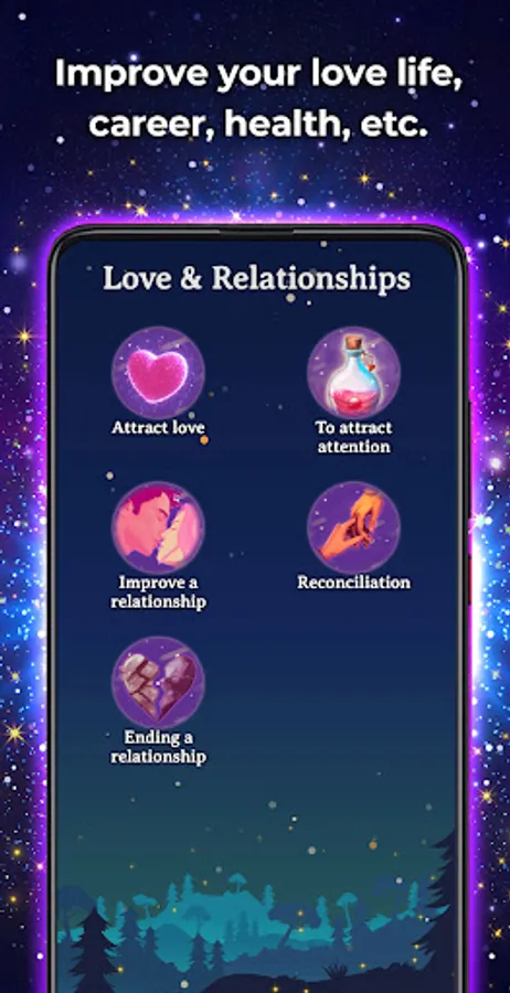 - Love and relationships: Attract love, attract attention, improve relationship, reconciliation, end a relationship.