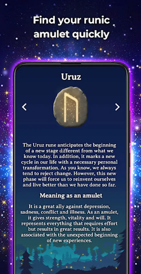 - Access to the list of runes (Futhark) and their meaning as an amulet and in rune casting