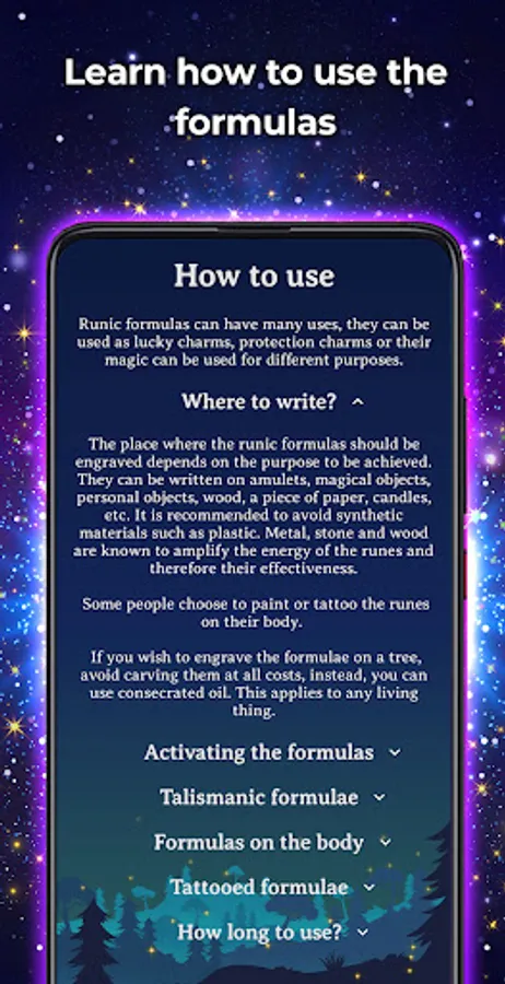 This application is suitable for beginners in the world of Nordic magic and pagan practices such as Wicca. Amulets and magical symbols can be used in everyday life to achieve specific purposes.