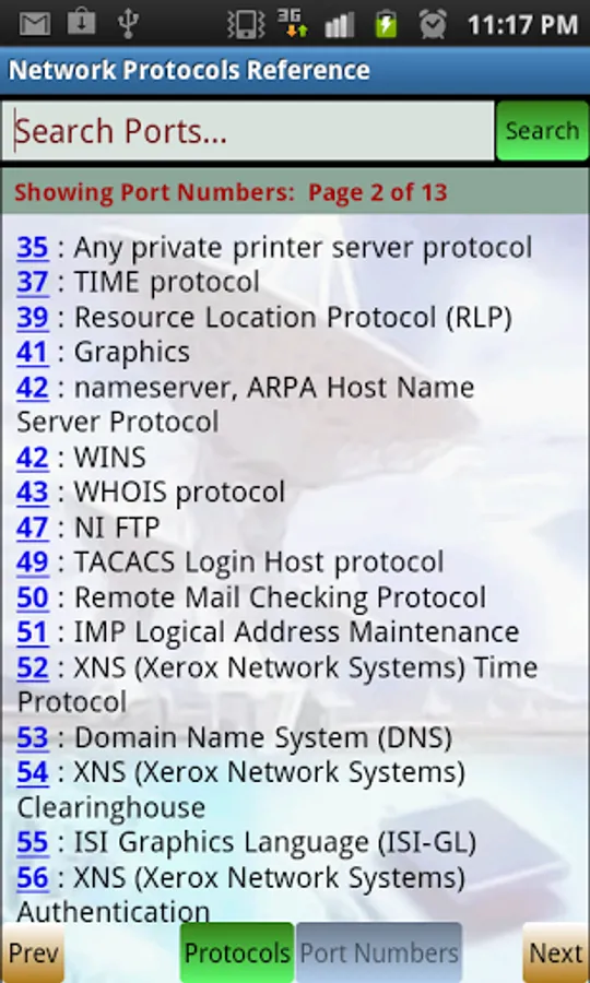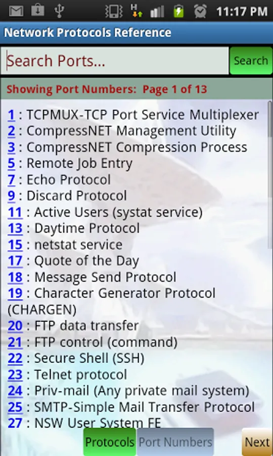 Reference for extensive list of network protocols and port numbers. If you are a student or a professional having interest in networking, this application is handy and valuable reference for you.
