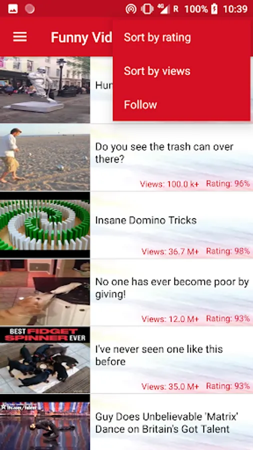 Sort videos based on most views or best rating.