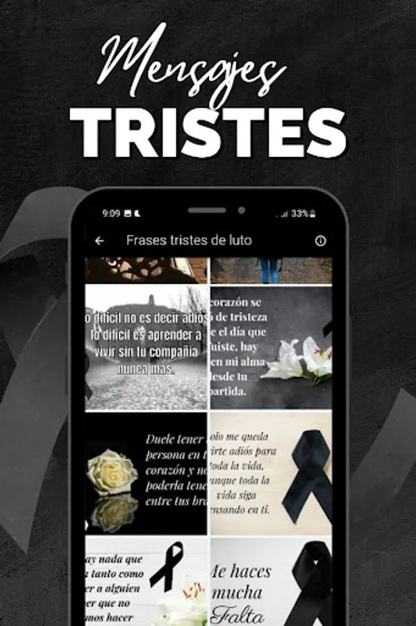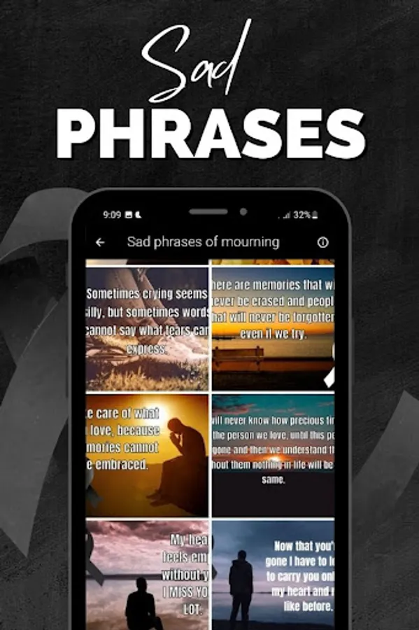 In this application you can find messages of comfort and support in these difficult times with sad phrases of mourning, you can also express sad emotions through these images, facing the loss of a loved one has never been easier.