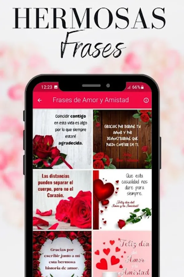 It is time to celebrate, today is a special day for each person, February 14 is the day of love and friendship or also known as Valentine's Day, for that reason we present this beautiful application with phrases of love and friendship, romantic messages for Valentine's Day, Here you can find countless images with the most beautiful love images for Valentine's Day, love dedications, messages for friends, friendship phrases, love and friendship day phrases.