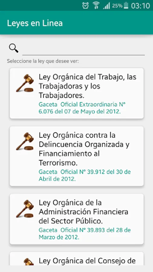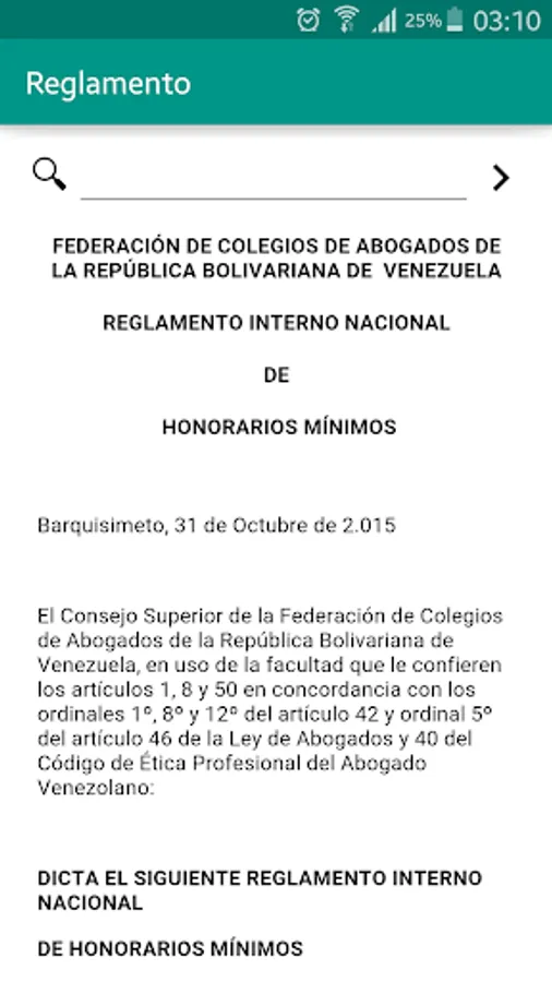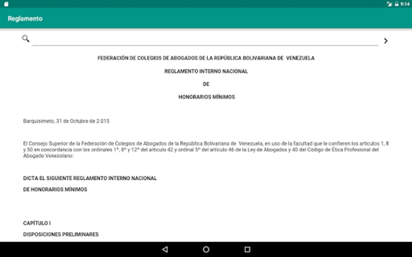 It is a reference application for Venezuelan Attorney. We do their work more efficiently and effectively. It contains necessary tools such as calculator minimum fees, the fees regulations, a library with a variety of laws, national directory of Registries and Notaries, historical list of minimum wages and food stamps, legal dictionary. Leave us your comments and recommendations. Only available in Spanish Venezuela.