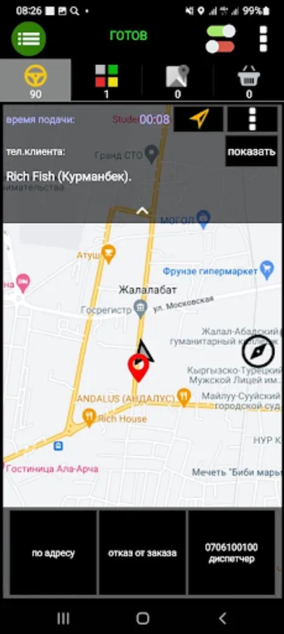 A handy application with which you can track incoming orders and take the one that is nearby.