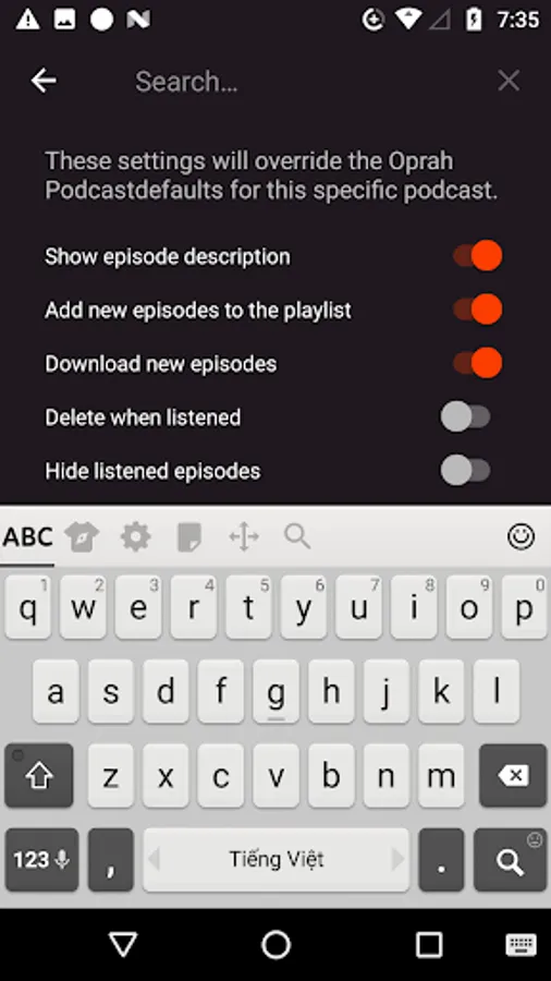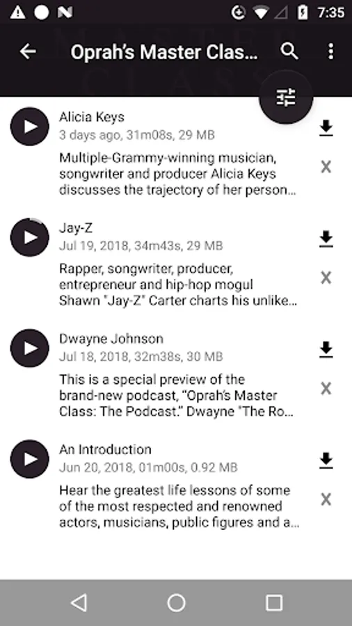 - Filter podcasts