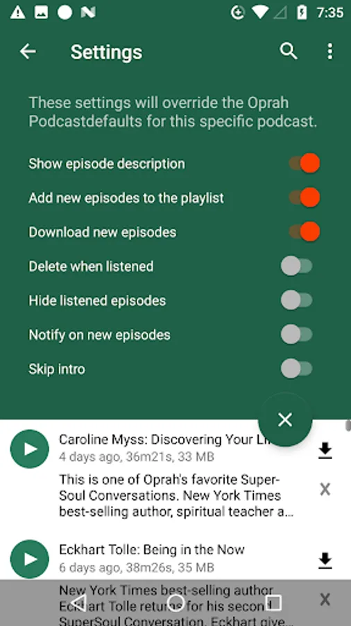- Automatic file management: Automatic podcast download and deletion.